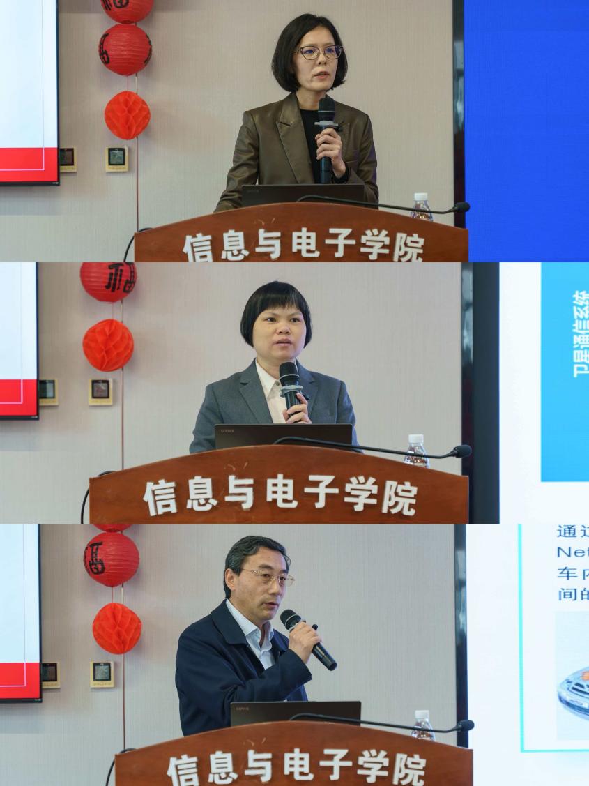 随后,科普讲座在信息科学实验楼202报告厅举行,由郭婧主持。三位行业专家依次带来精彩报告:中信科移动高级技术专家、海角 及北京航空航天大学博士生导师康绍莉围绕“卫星互联网技术”作专题分享,聚焦星地融合发展状况、手机直连卫星、6G星地融合等方面的内容;中国信息通信研究院知识产权与创新发展中心副主任、高级工程师闫坤深入解读“低空装备产业”发展前景,详细介绍了产业发展背景、现状以及发展展望;教授级高工、中国通信学会车联网专业委员会秘书长胡延明全面介绍“蜂窝车联网技术与产业”发展态势,重点阐述了技术演进路径、标准化进展及典型应用场景。讲座结束后,主办方设置互动交流环节,与会师生与专家围绕报告内容深入探讨,现场氛围热烈。