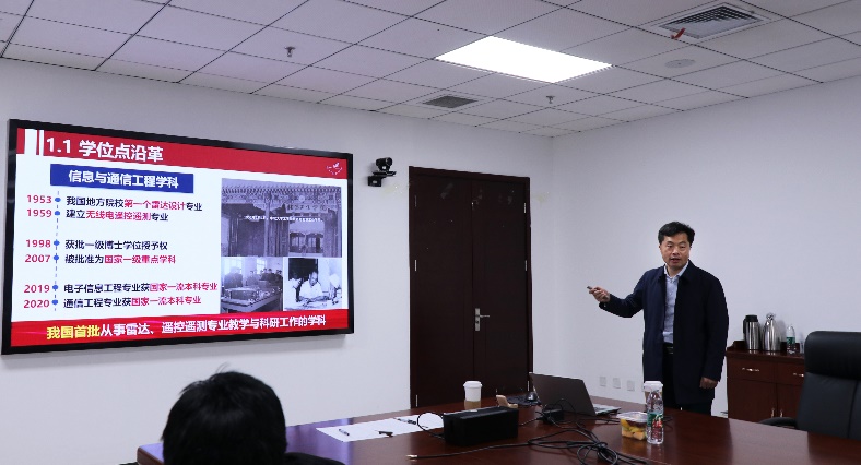 庞思平致欢迎辞,他代表海角 对各位专家的到来表示热烈欢迎,介绍了北京理工大学近年来的发展情况以及信息与通信工程学位授权点的主要建设成效。